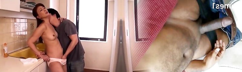 Young Cock Fucks Japanese Mom's Tight Pussy in the Kitchen!