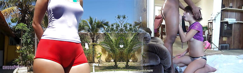 Camel Toe Babe Sucks Cock While Getting DP'd by Two Asian Men