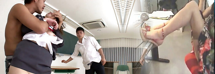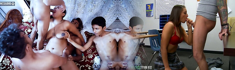 Tit-fucking, Blowjobs And Wrestling - This Is What Happens When You Get A Group Of Horny Students And An Asian Porn Queen For A Teacher".