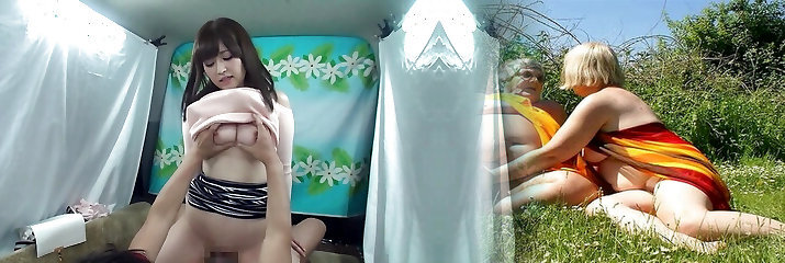 Busty Asian Wife Gets Fucked Under the Tent While Horny Hubby Watches