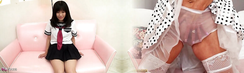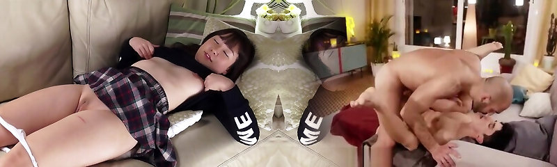 Japanese Teen Riko's Shaved Pussy Gets Creamed on the Couch