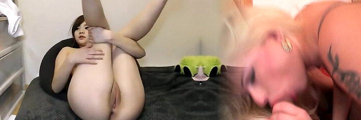 XXX Close-Up Asian Sex Scene Featuring Shaved Pussies and Flying Cum