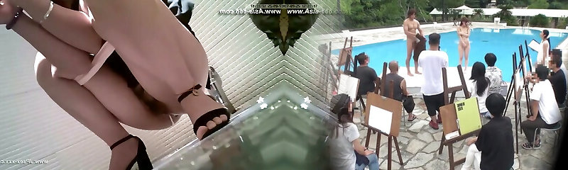 Sexy Japanese Nude Poses for Porn Camera in Public Changeroom - Blowjob Action!