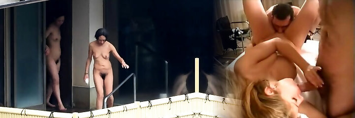 Sexy Voyeurs and Exhibitionist Sluts: Nudists Fuck on Stage while Others Watch!