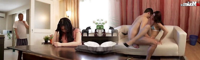Pussy-Loving Stepbro Fucks His Sexy Busty Asian MILF Mommy In Front Of Clueless Dad!