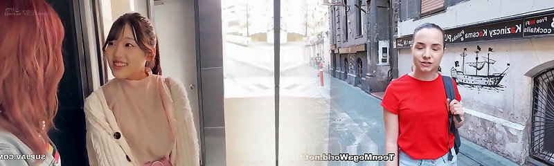 Japanese Redhead Blowjob Threesome: Asian Beauties Fuck Each Other's Pussies