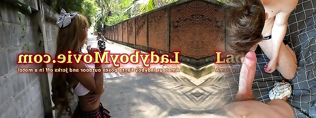 Asian Ladyboy Teases Hard Cock Outside