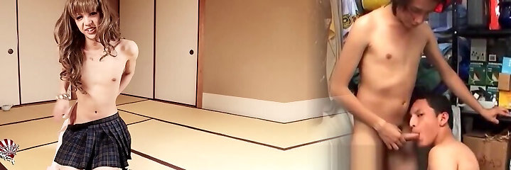 Dick-Loving Tranny in an Asian Schoolgirl Costume - Transsexual Sex Porn