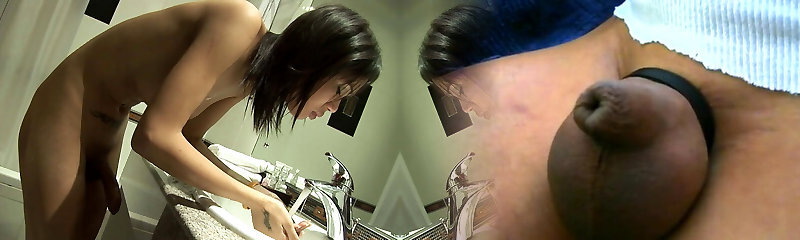 Asian Shemale Slut Strokes Her Cock and Explodes with Cum!