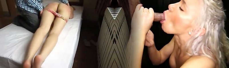 Mom Fucks Daughter's Friend While Daughter Gets Spanked by Lesbian Lover