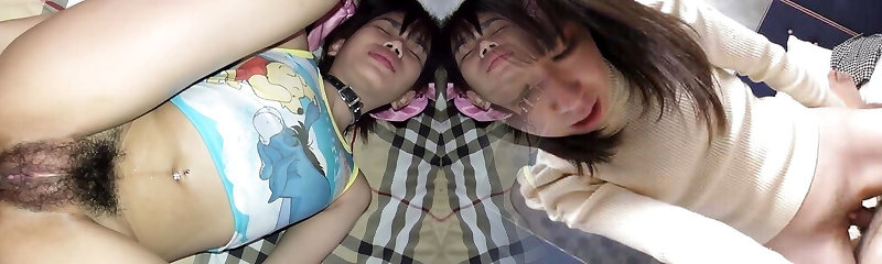 Cum Inside These Young Japanese Twins' Tight Pussies While They Suck Your Cock!
