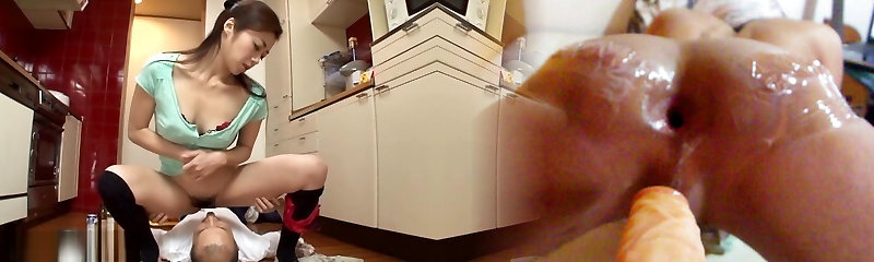 Fucking the Retarded Son's Japanese Babysitter in the Well-Equipped Kitchen for a Blowjob