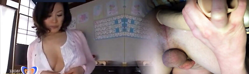 Sexy Big Titted Japanese MILF Fucks Her Husband In The Kitchen